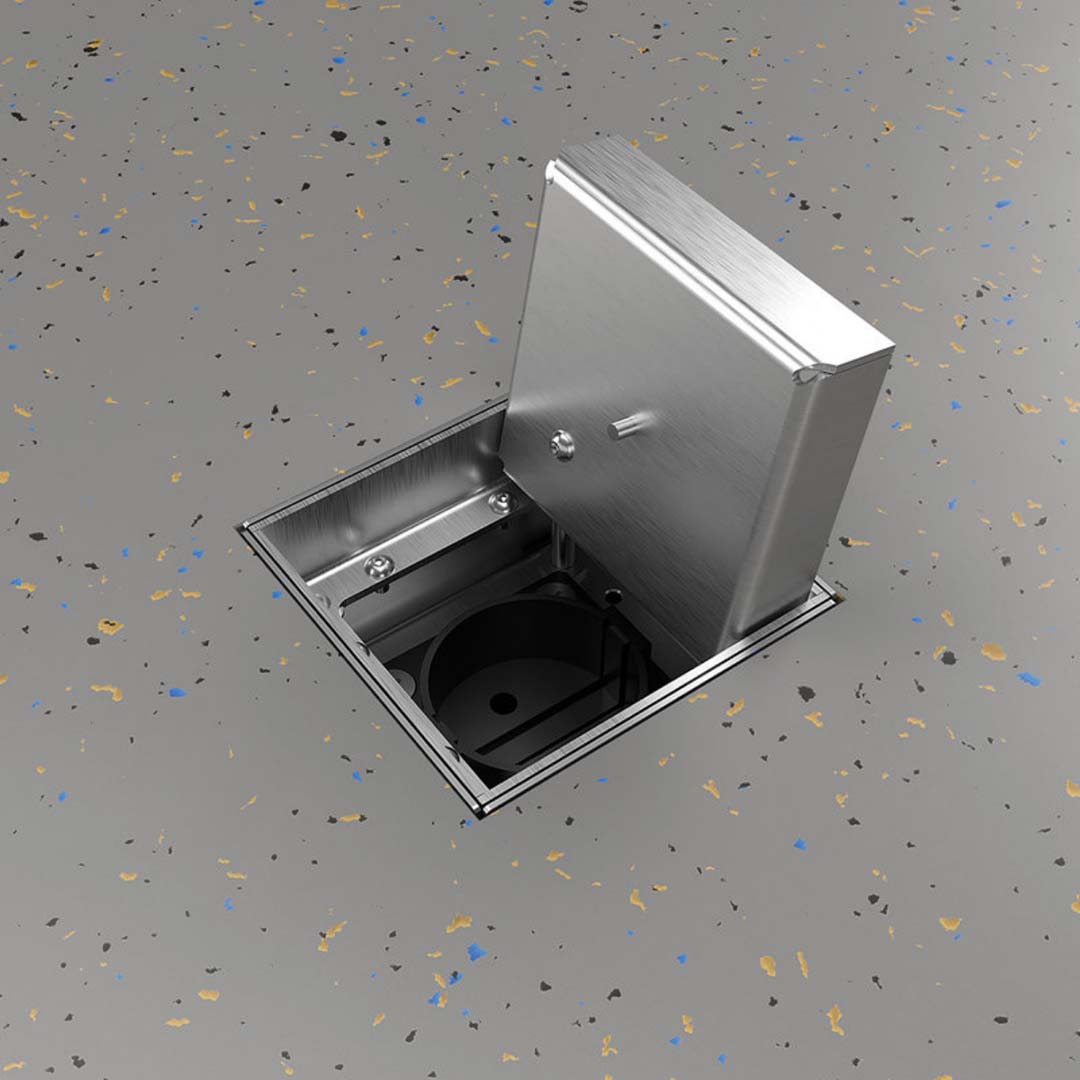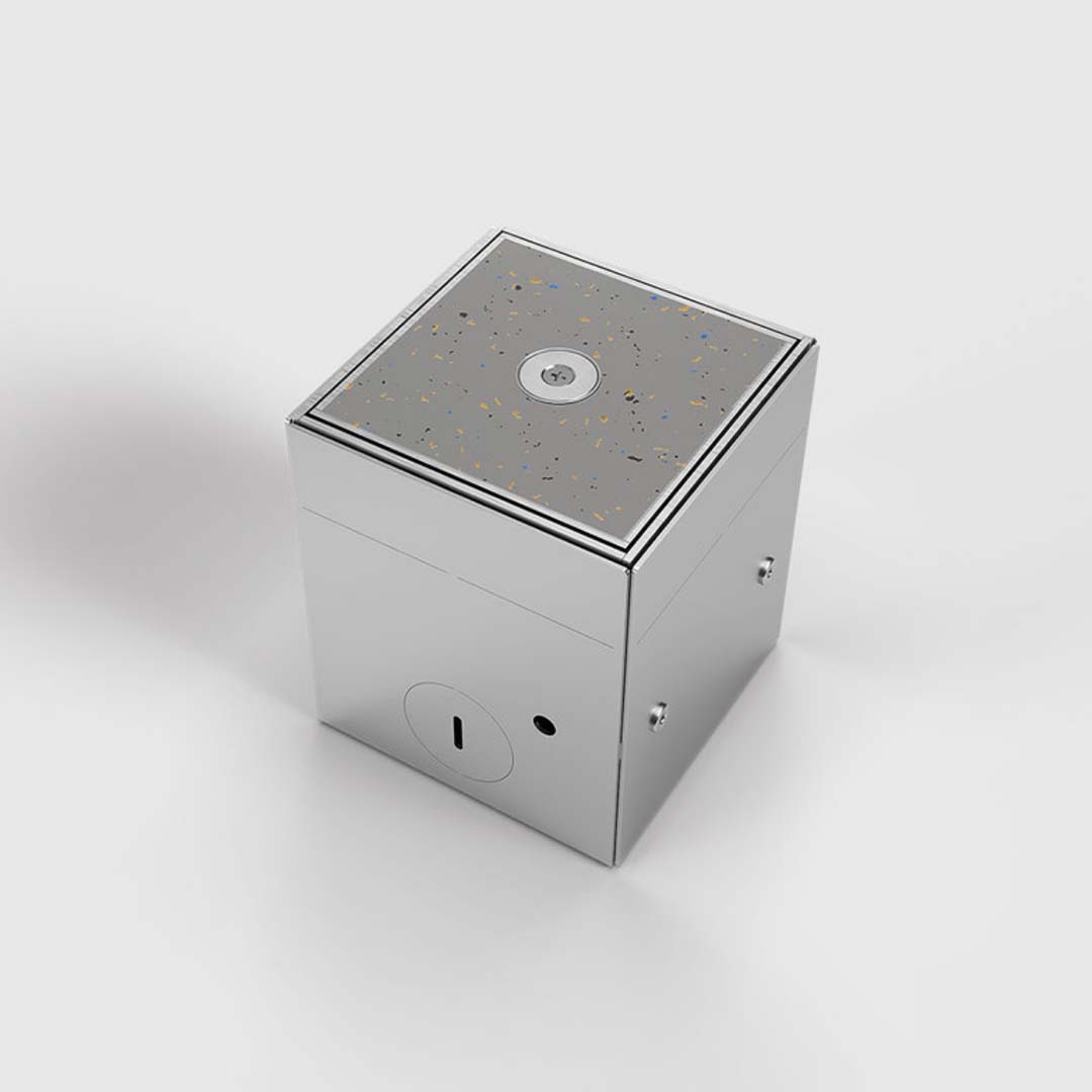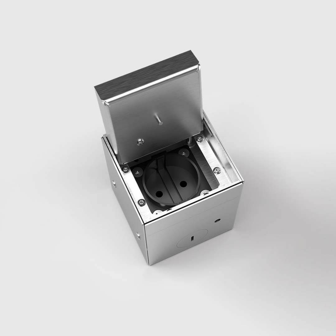 Der Rahmen und Deckel bestehen aus 1,5 mm geschliffenem Edelstahl 1.4301. Der Deckel kann mit eigenem Belag ausgelegt werden. Die Belagstärke inkl. Kleber sollte nicht mehr als 15 mm betragen. Der Deckel kann ganz einfach mit einem Metallstück/Schraubenzieher geöffnet werden, da sich in der Mitte des Deckels ein Magnet befindet. Bitte beachten Sie, dass aufgrund der geringen Größe, nur gerade und keine abgewinkelten Standardstecker gesteckt werden können. Die Aufnahmebox besteht aus Sendzimier verzinktem Stahlblech. Die Ausführung ist für Einzellasten bis 120kg augelegt, d.h. nach DIN VDE 0634 Teil 1 begehbar. Vorausgesetzt wird der sachgemäße Einbau. Nivellierschrauben ermöglichken eine Höhenkorrektur von ca. 20mm.