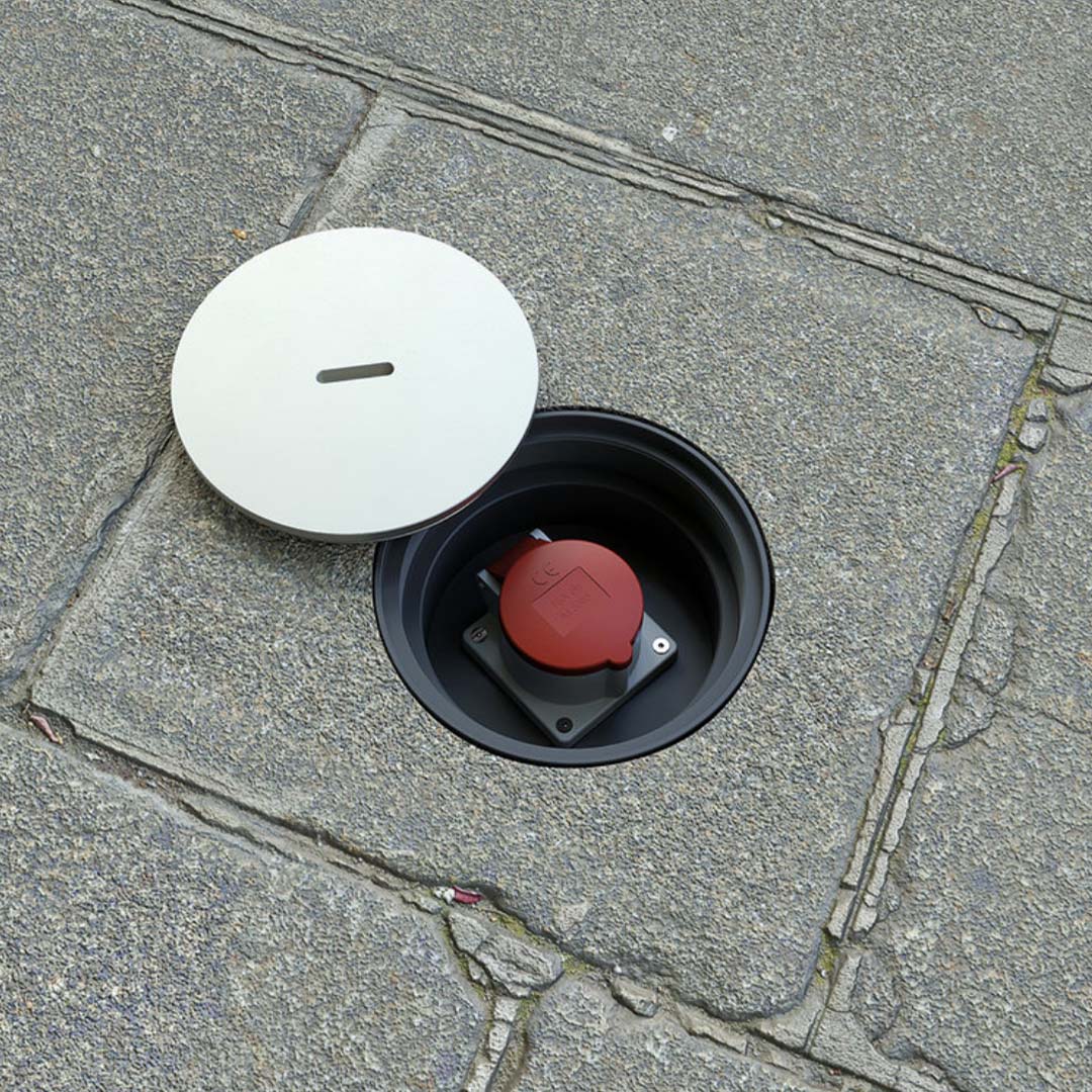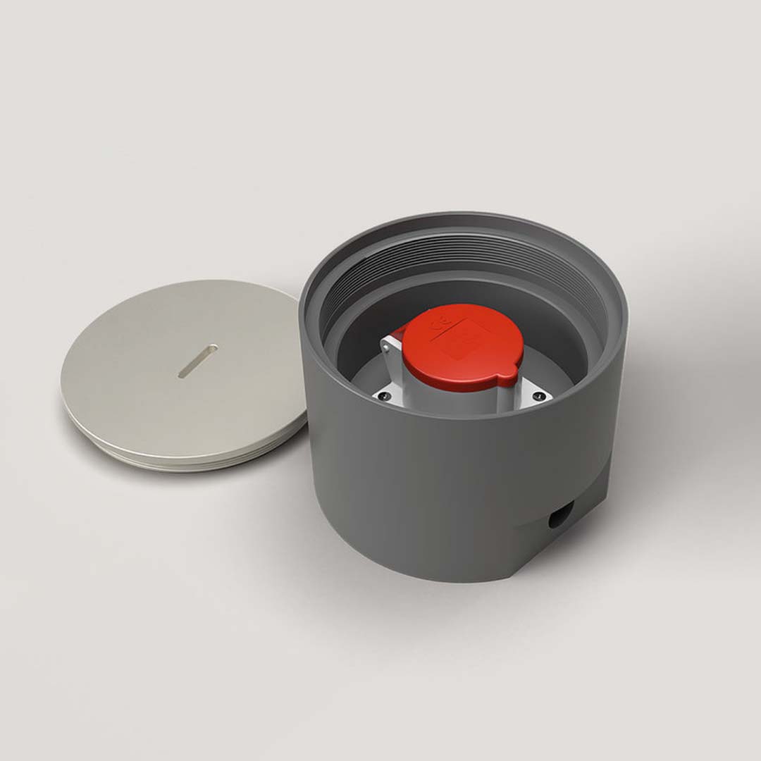 Das Gehäuse besteht aus massiven PVC und der Deckel aus massivem Aluminium, Alu-Natur eloxiert.. Die Steckdoseneinsätze verfügen über ein VDE Zeichen. Im geschlossenen Zustand ist sie wasserdicht, IP67. Geöffnet und geschlossen wird die Bodensteckdosen mit einem Sonderschlüssel, dieser ist im Lieferumfang enthalten. Weitere Bestückungsvarianten auf Anfrage.