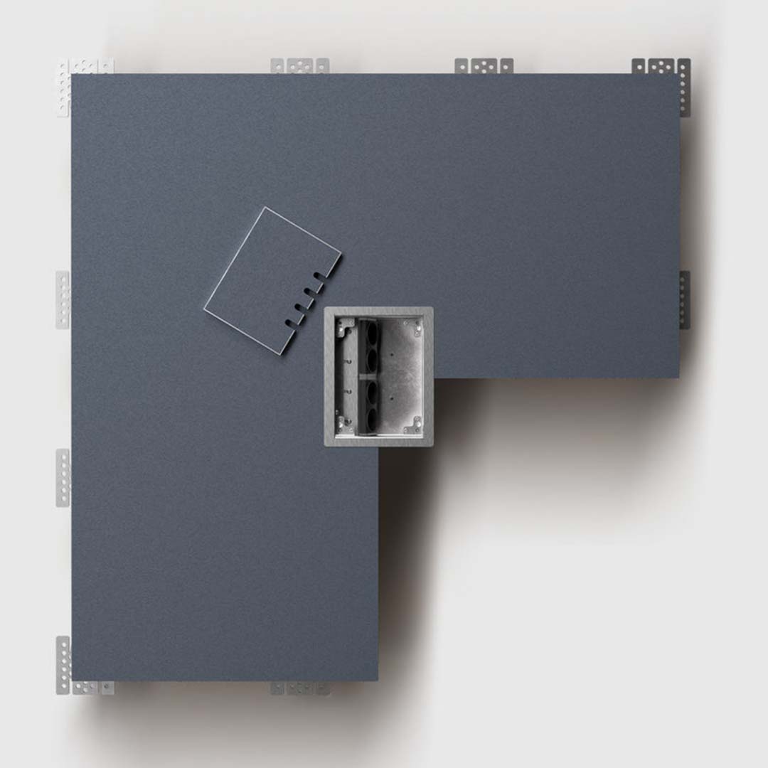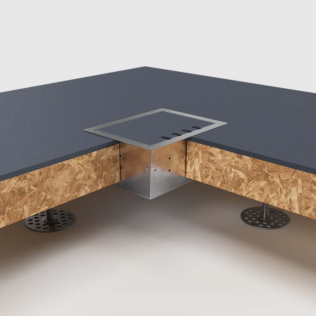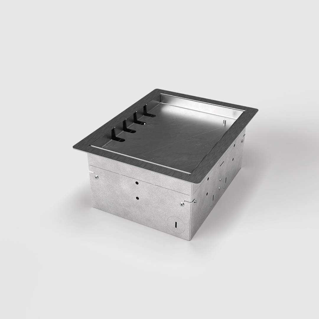 Das Gehäuse besteht aus Edelstahl 1.4301 V2A 1,5 mm stark, die Oberfläche ist geschliffen. Die Steckdose verfügt über einen Deckel, der aufgelegt und mit eigenem Belag ausgelegt wird. Die Belagstärke sollte, inkl. Kleber, nicht mehr als 15mm betragen. Diese Ausführung ist für Einzellasten bis 120 kg ausgelegt d.h. nach DIN VDE 0634 Teil 1 begehbar. Vorausgesetzt wird der sachgemäße Einbau. Die Aufnahmebox besteht aus Sendzimier verzinktem Stahlblech.