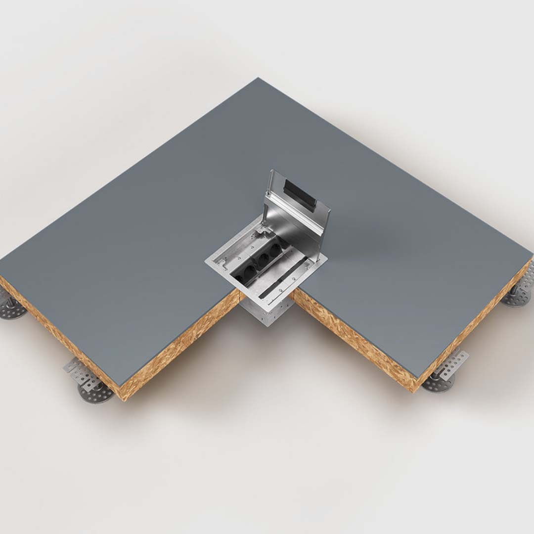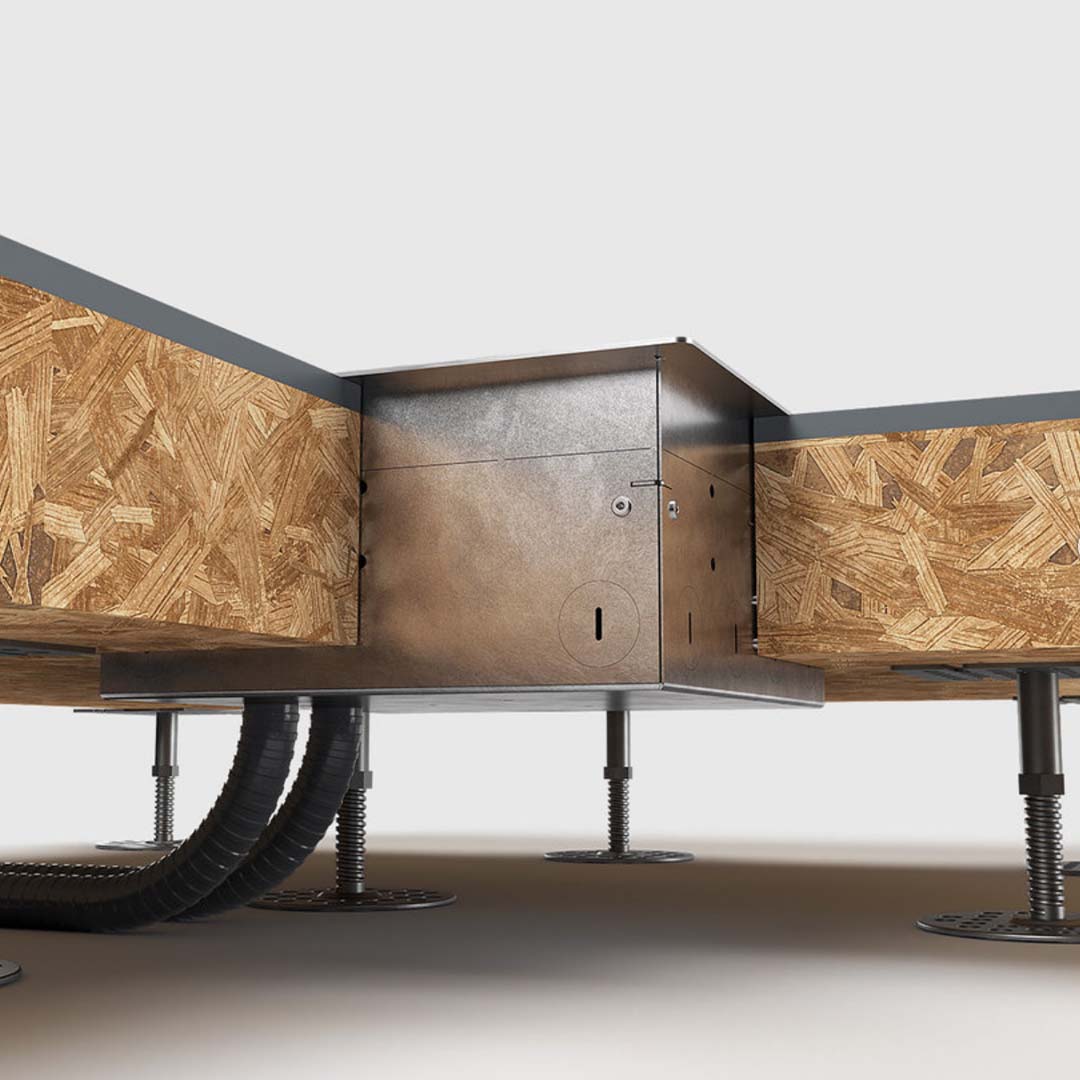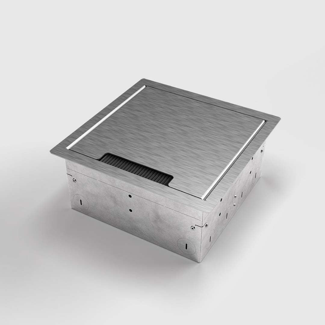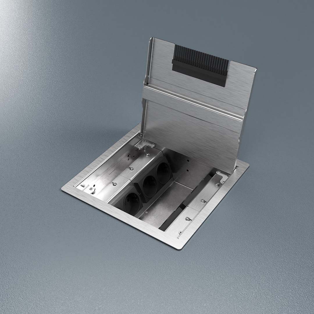 Das Gehäuse besteht aus Edelstahl 1.4301 V2A 1,5 mm stark, Oberfläche geschliffen. Die Steckdose wird über einen Klappdeckel geöffnet, der eine Aussparung zur Kabeldurchführung aufweist. Das ermöglicht das schließen des Deckels auch bei gesteckten Steckern. Diese Ausführung ist für Einzellasten bis 120 kg ausgelegt d.h. nach DIN VDE 0634 Teil 1 begehbar. Vorausgesetzt wird der sachgemäße Einbau. Die Aufnahmebox besteht aus Sendzimier verzinktem Stahlblech.