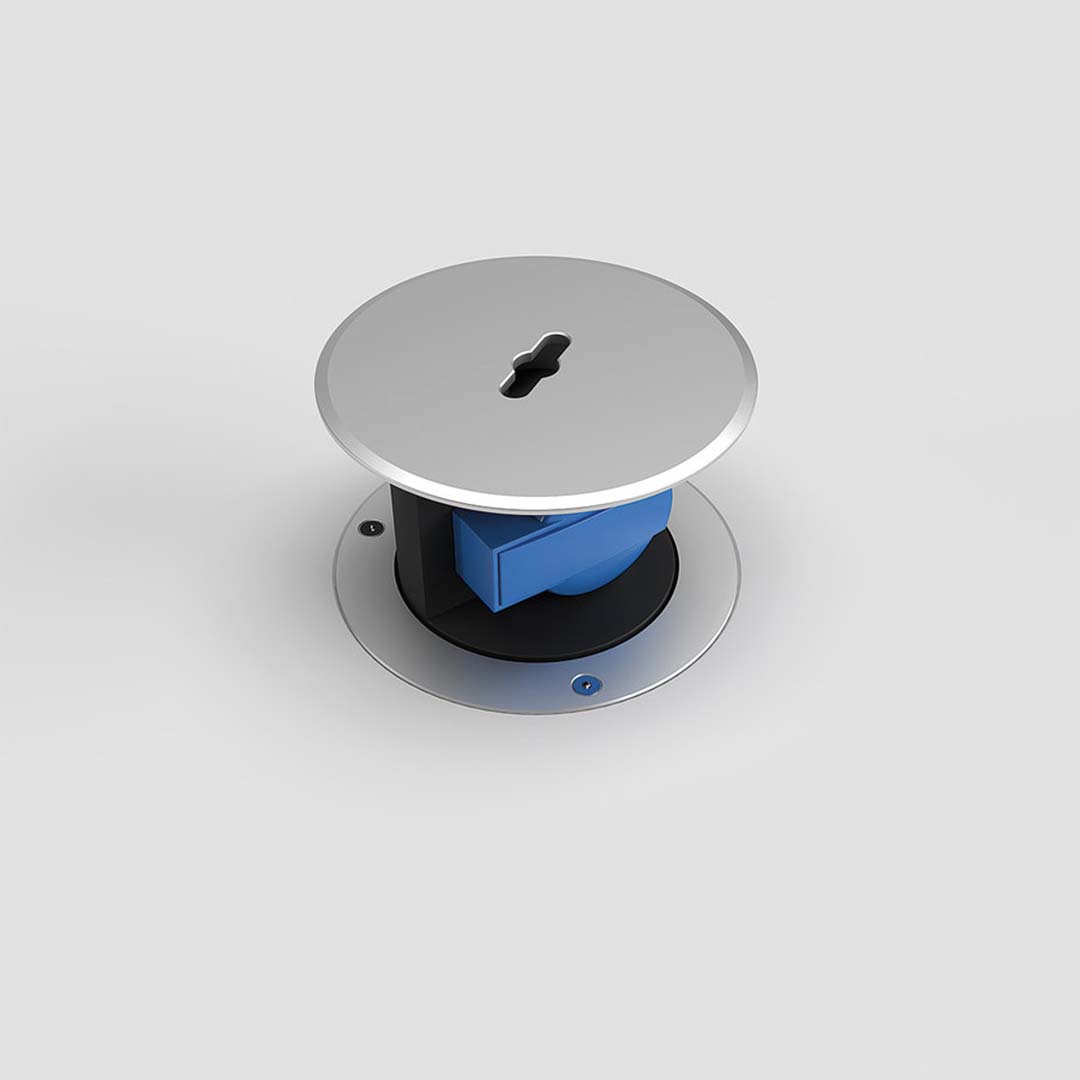 Senkverteiler/Senkelektrant SV111 für den Außenbereich, aus salzwasserbeständigem Aluminium mit rundem Rahmen. Der Senkverteiler SV111 ist mit einem PKW befahrbar. Die Standard-Oberfläche ist Alu-Natur. Hochziehen und Absenken der Geräte erfolgt mittels Sonderschlüssel. Bestückt ist der Senkverteiler standardmäßig mit einer SCHUKO Steckdose mit VDE Prüfzeichen. Das Gehäuse ist im geschlossenen Zustand wasserdicht, Schutzart IP 67. Weitere Bestückungsvarianten gerne auf Anfrage.